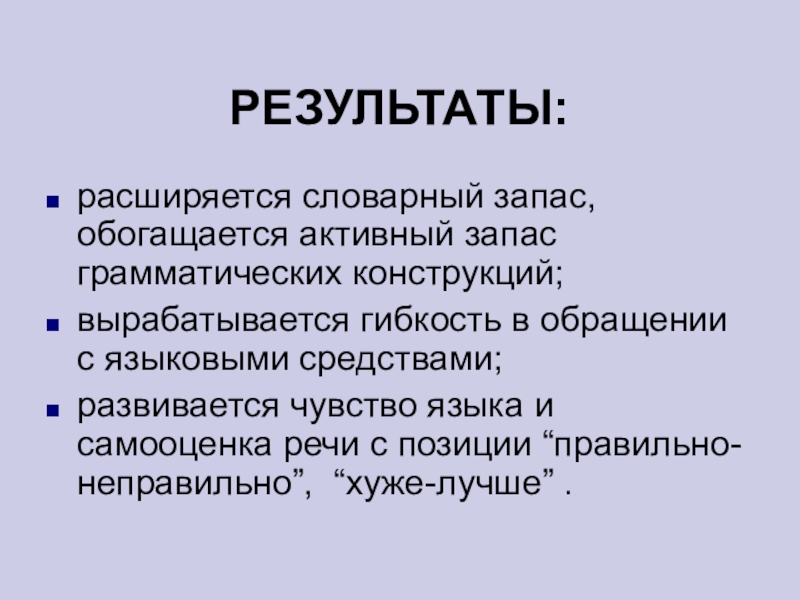 расширяется словарный запас, обогащается активный запас грамматических конструкций;