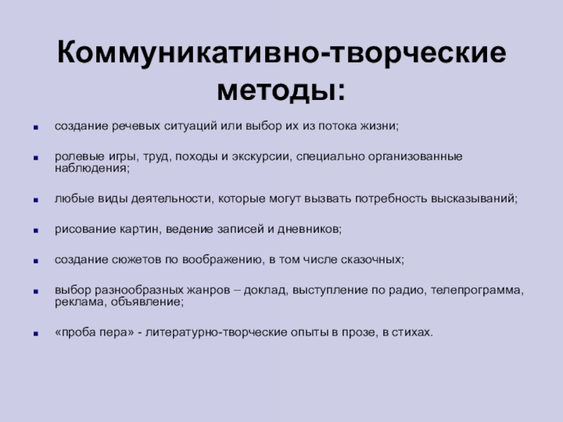 выбор разнообразных жанров – доклад, выступление по радио, телепрограмма, реклама, объявление;