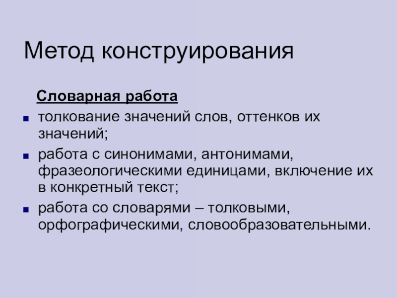 работа со словарями – толковыми, орфографическими, словообразовательными.