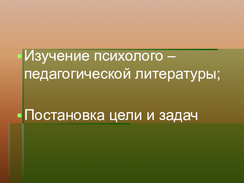 Изучение психолого – педагогической литературы;Постановка цели и задач