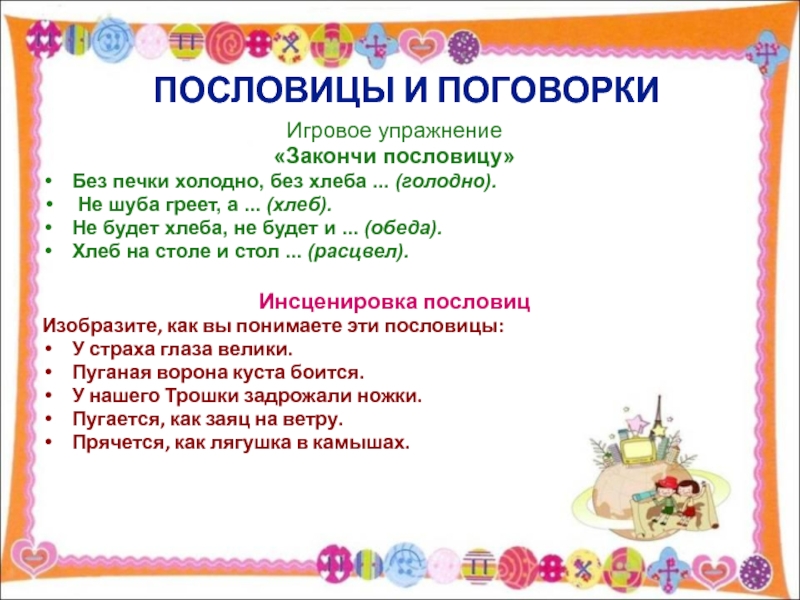Используя в своей речи пословицы и поговорки, дети учатся ясно, лаконично,