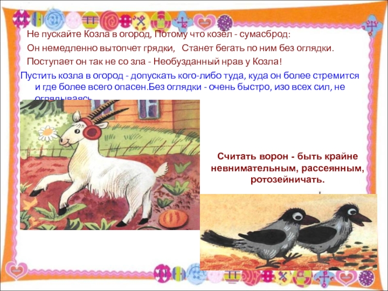 Слайд 27 Не пускайте Козла в огород, Потому что козёл -