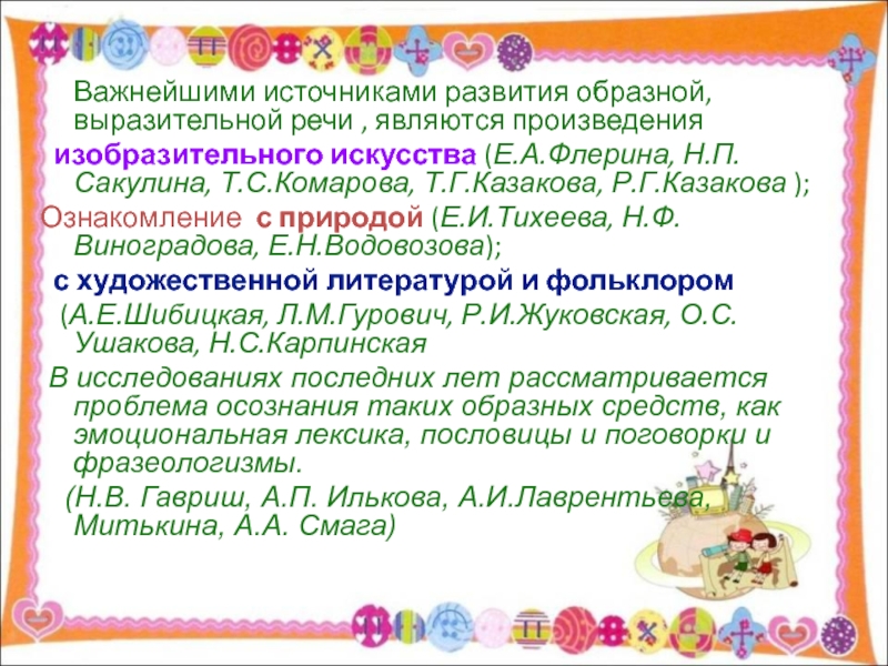 Проблема развития образности речи детей изучалась в лингвистическом, психологическом и