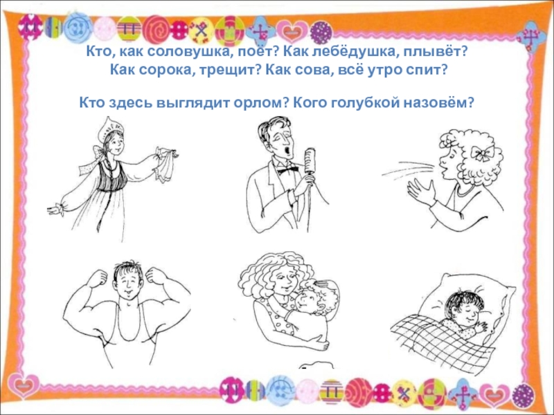Кто, как соловушка, поёт? Как лебёдушка, плывёт?