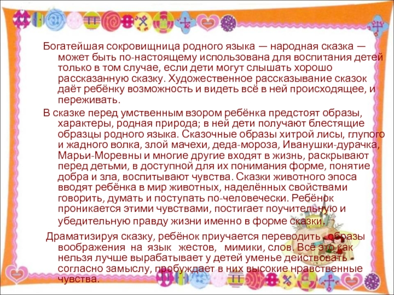 Слайд 9Богатейшая сокровищница родного языка — народная сказка — может быть по-настоящему
