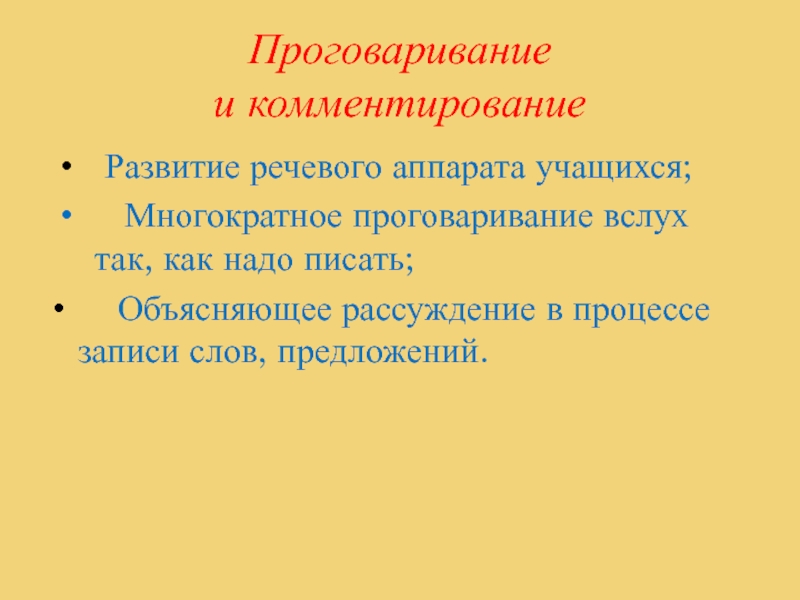 Объясняющее рассуждение в процессе записи слов, предложений.