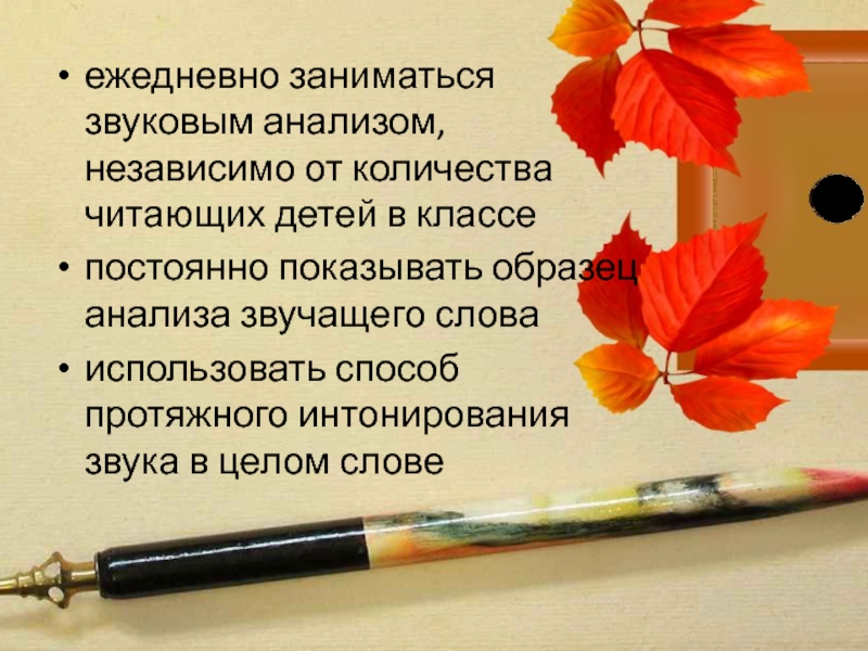 Слайд 14ежедневно заниматься звуковым анализом, независимо от количества читающих детей в классе