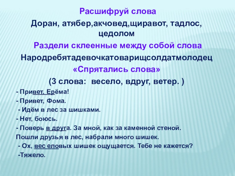 ДЕРЕВ(Ь,Ъ)Я, ОТ(Ь,Ъ)ЕХАТЬ, ОСЕН(Ь,Ъ)Ю.