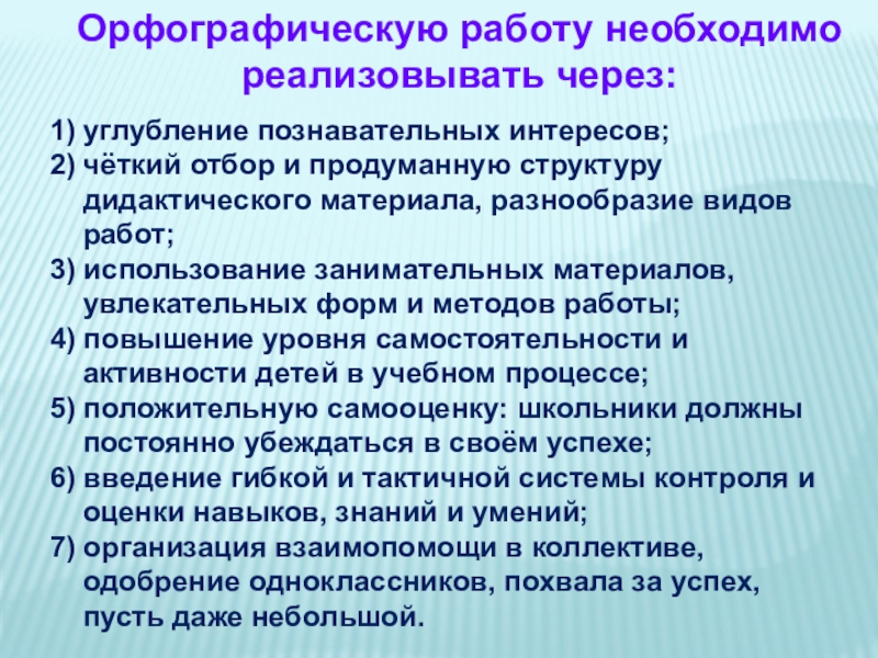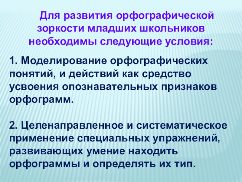 Для развития орфографической зоркости младших школьников необходимы следующие условия:
