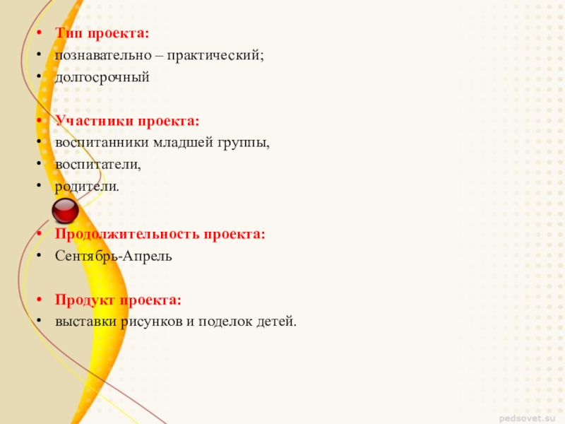 -выбор форм, средств, методов и приемов работы по теме проекта;