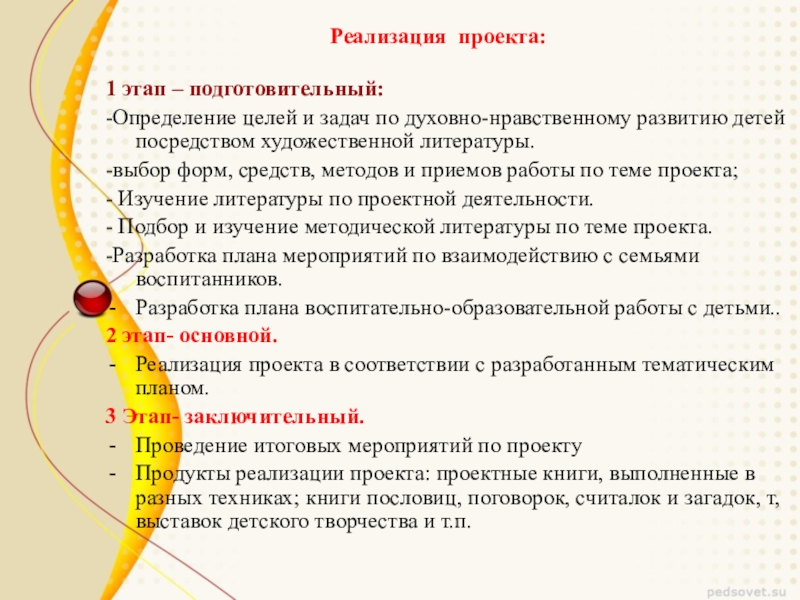 Реализация проекта в соответствии с разработанным тематическим планом.