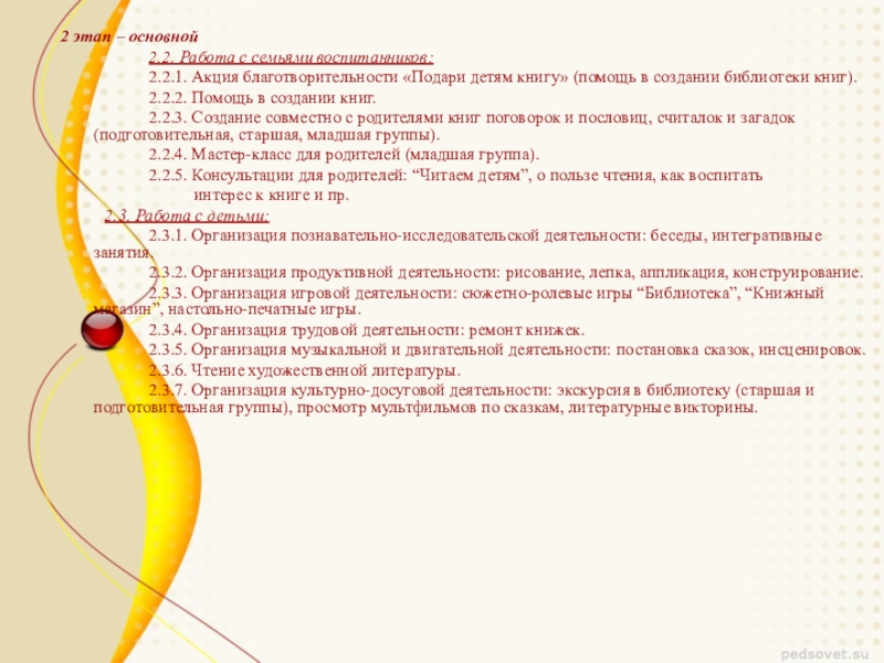 2.3.3. Организация игровой деятельности: сюжетно-ролевые игры “Библиотека”, “Книжный магазин”, настольно-печатные игры.