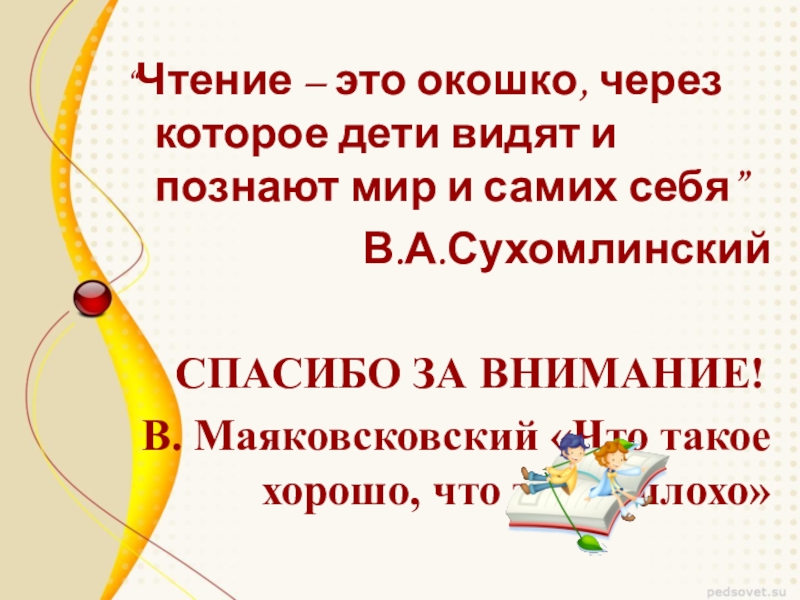 Слайд 12“Чтение – это окошко, через которое дети видят и познают мир