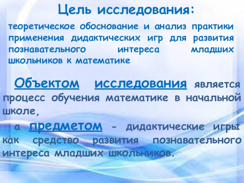 а предметом - дидактические игры как средство развития познавательного интереса младших школьников.