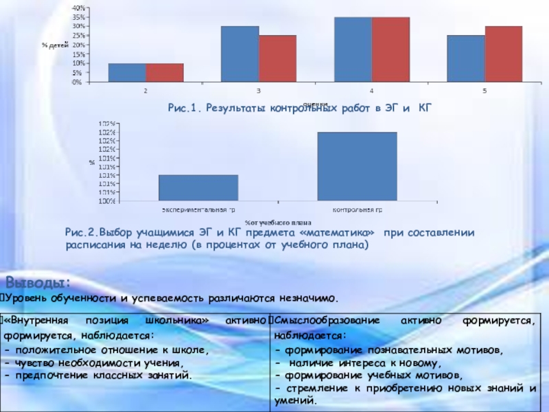 Использовались также данные о результативности работы по обучению на уроках математики на основе сравнения оценок за контрольные работы до и после проведения формирующего эксперимента.
