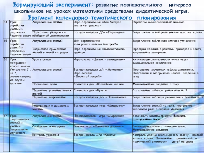 2.Провести анализ практики использования дидактических игр в процессе обучения математике с позиции их влияния на развитие познавательного интереса младших школьников и выявить её эффективность.