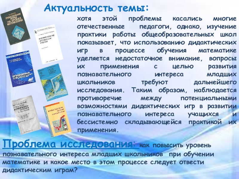 Проблема исследования: как повысить уровень познавательного интереса младших школьников при обучении математике и какое место в этом процессе следует отвести дидактическим играм?