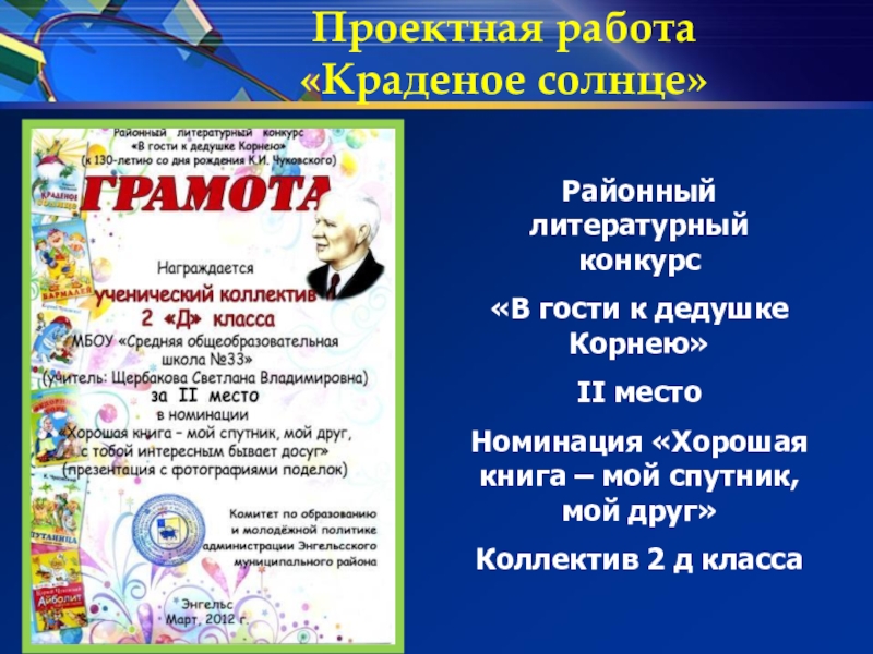 Это сайт презентаций, где можно хранить и обмениваться своими презентациями, докладами, проектами, шаблонами в формате PowerPoint с другими пользователями. Мы помогаем школьникам, студентам, учителям, преподавателям хранить и обмениваться учебными материалами.