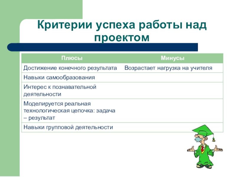 Интегрированный проект предоставляет возможность использования знаний в различных сочетаниях, стирает границы между школьными дисциплинами; сближает применение школьных знаний с реальными жизненными ситуациями.