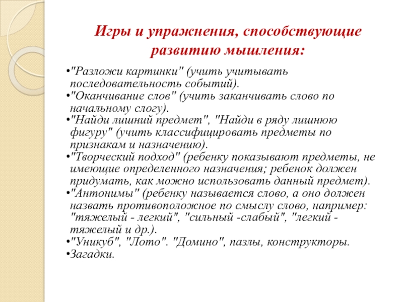 Развивать быстроту мышления через дидактические игры.
