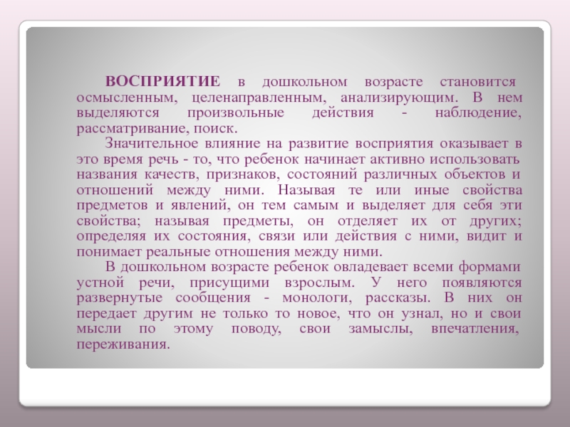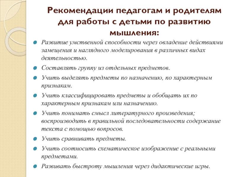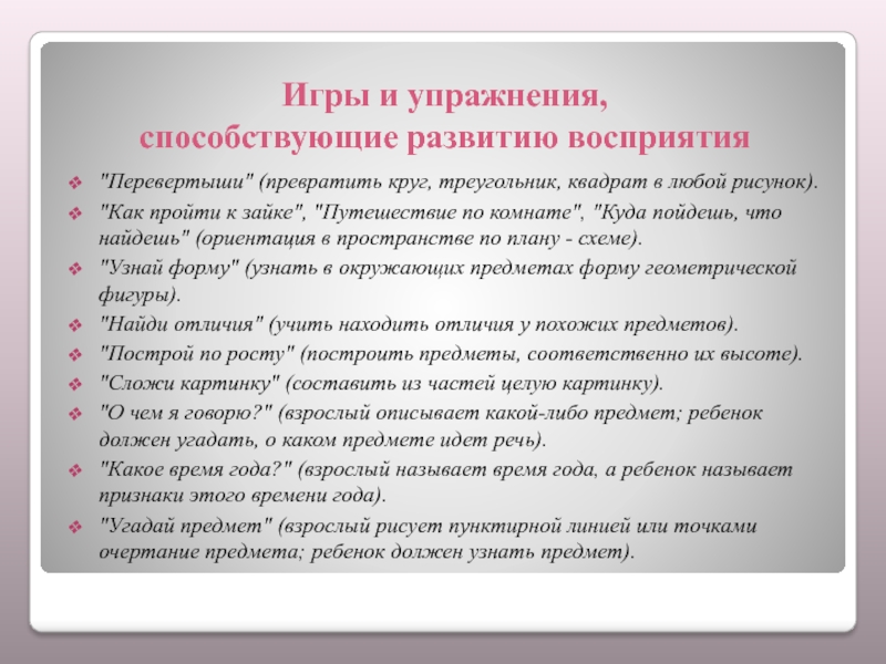 РЕКОМЕНДАЦИИ ПЕДАГОГАМ И РОДИТЕЛЯМ ПО РАЗВИТИЮ ВОСПРИЯТИЯ