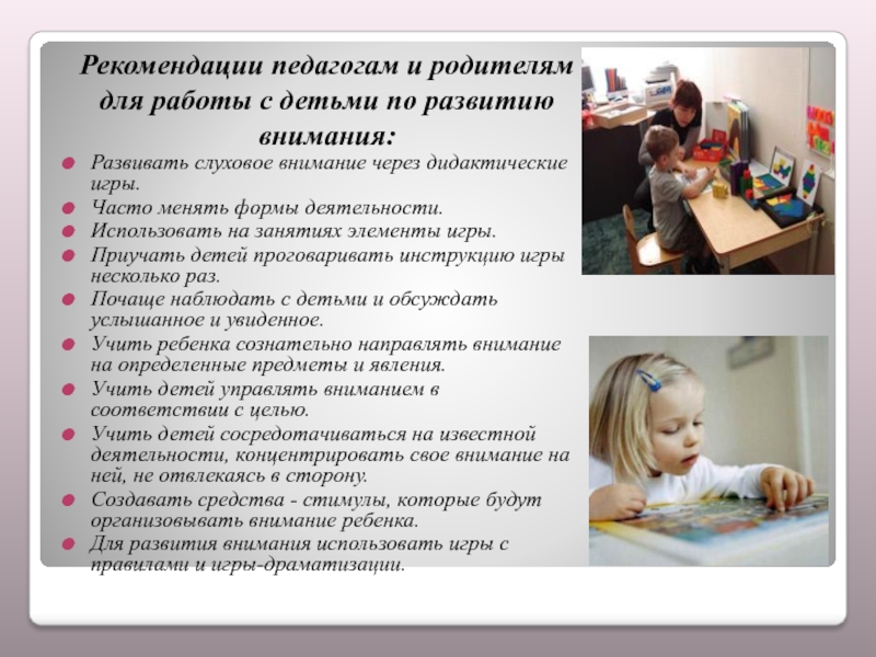 Для развития внимания использовать игры с правилами и игры-драматизации.