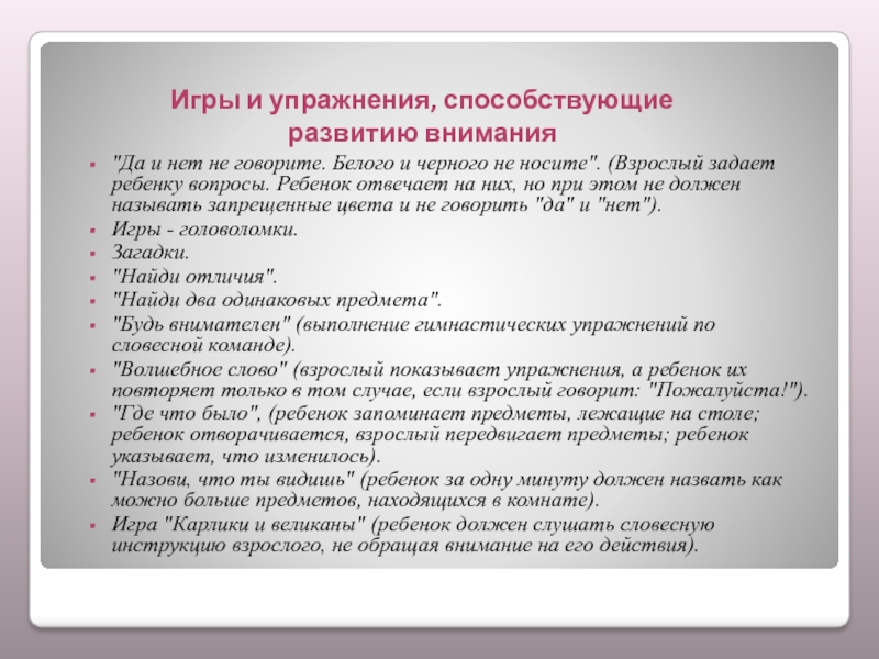 Игры и упражнения, способствующие развитию внимания