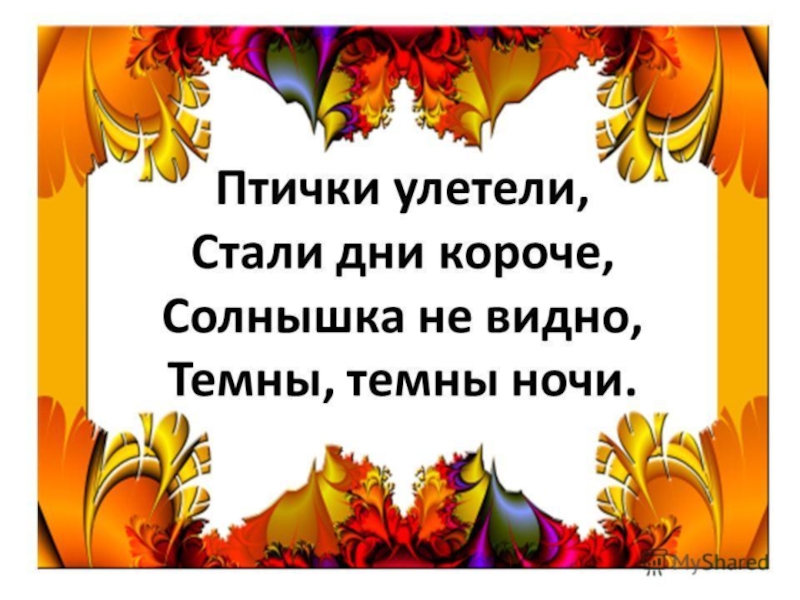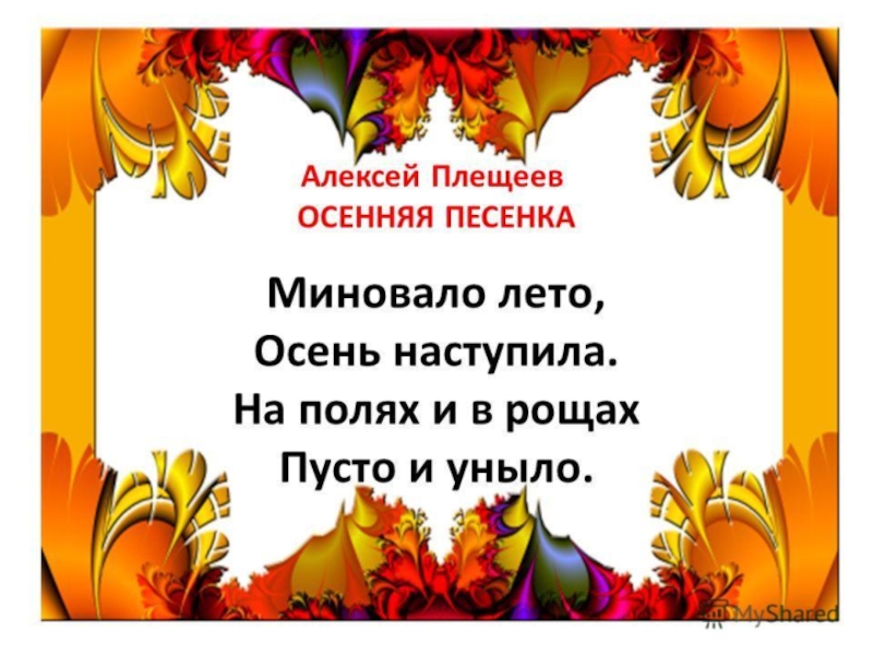 Слайд 1ЗАУЧИВАНИЕ СТИХОТВОРЕНИЯ А. ПЛЕЩЕЕВА «ОСЕННЯЯ ПЕСЕНКА»
