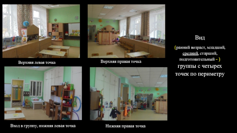 (ранний возраст, младший, средний, старший, подготовительный – ) группы с четырех точек по периметру