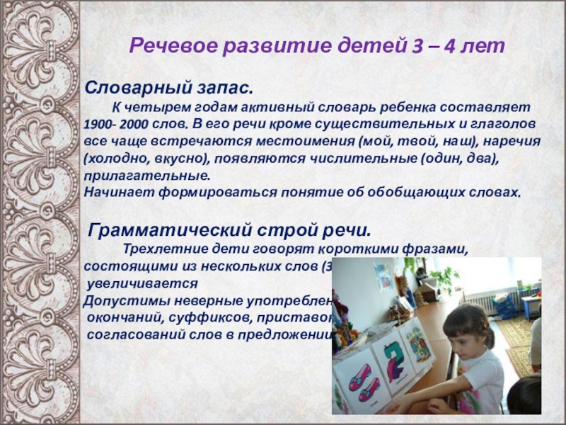 Слайд 6 Речевое развитие детей 3 – 4