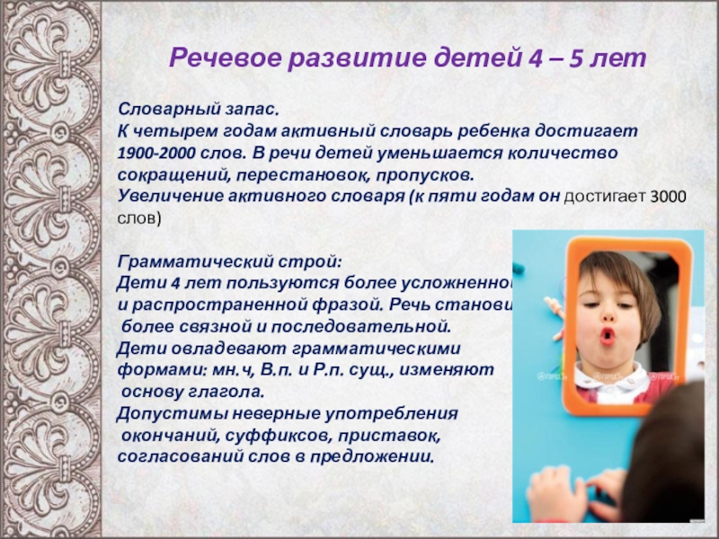 Слайд 8 Речевое развитие детей 4 – 5 лет