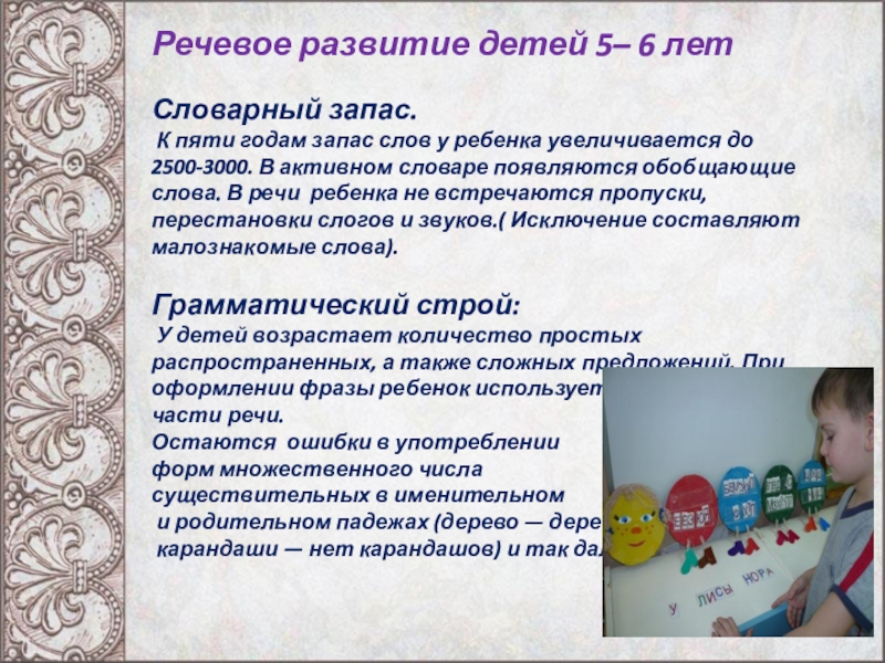 Слайд 10Речевое развитие детей 5– 6 лет