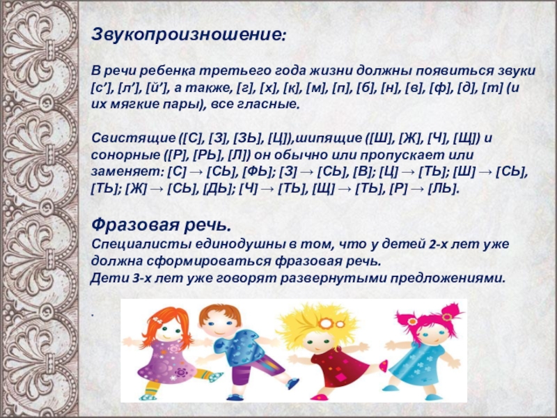 Трехлетние дети говорят короткими фразами, состоящими из нескольких слов (3,4). Постепенно фраза