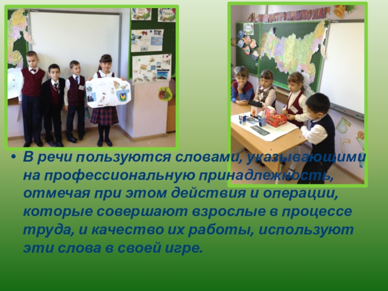 Слайд 4В речи пользуются словами, указывающими на профессиональную принадлежность, отмечая при этом