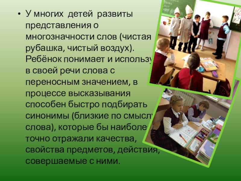 Слайд 5У многих детей развиты представления о многозначности слов (чистая рубашка, чистый