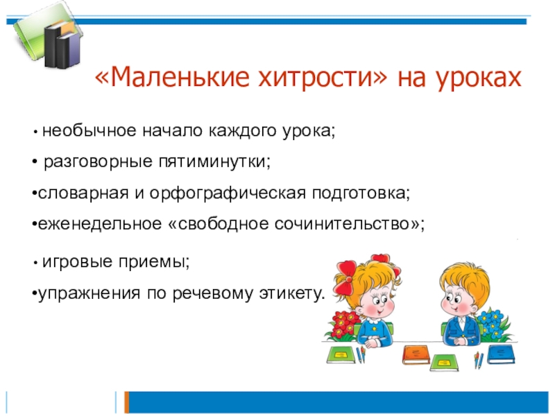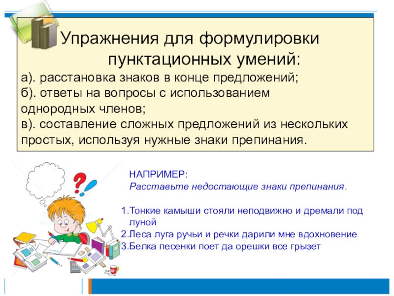 сообщение признаков изучаемых понятий, упражнения на их закрепление;