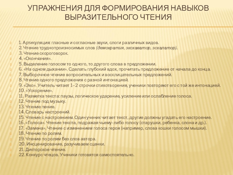УПРАЖНЕНИЯ ДЛЯ ФОРМИРОВАНИЯ НАВЫКОВ ВЫРАЗИТЕЛЬНОГО ЧТЕНИЯ