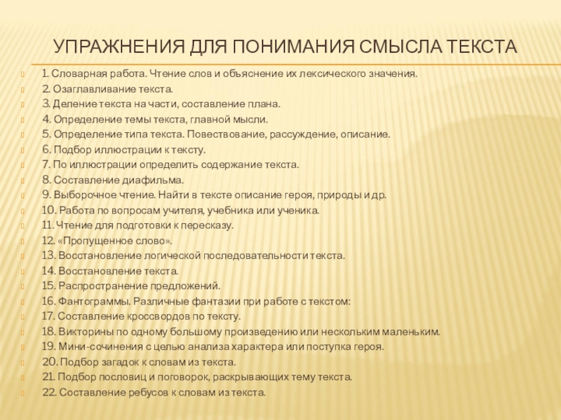 УПРАЖНЕНИЯ ДЛЯ ПОНИМАНИЯ СМЫСЛА ТЕКСТА
