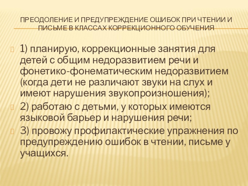 3) провожу профилактические упражнения по предупреждению ошибок в чтении, письме у учащихся.