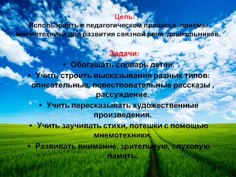 Учить строить высказывания разных типов: описательные, повествовательные рассказы , рассуждение.