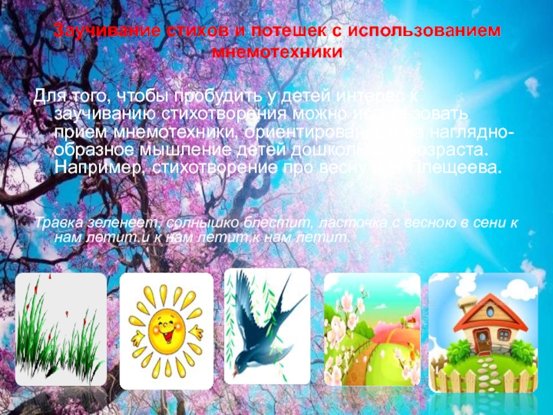 Учить заучивать стихи, потешки с помощью мнемотехники.