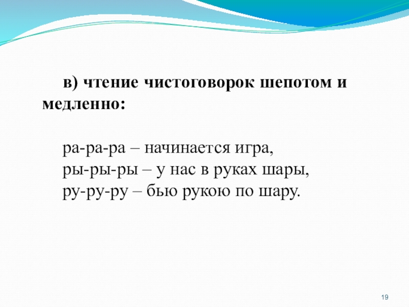Слайд 19в) чтение чистоговорок шепотом и медленно: