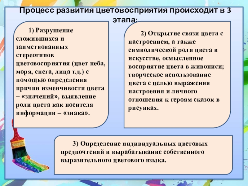 3) Определение индивидуальных цветовых предпочтений и вырабатывание собственного выразительного цветового языка.