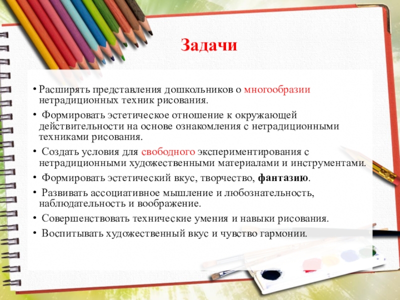 Расширять представления дошкольников о многообразии нетрадиционных техник рисования.