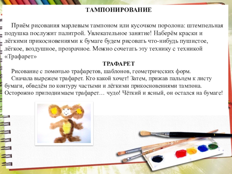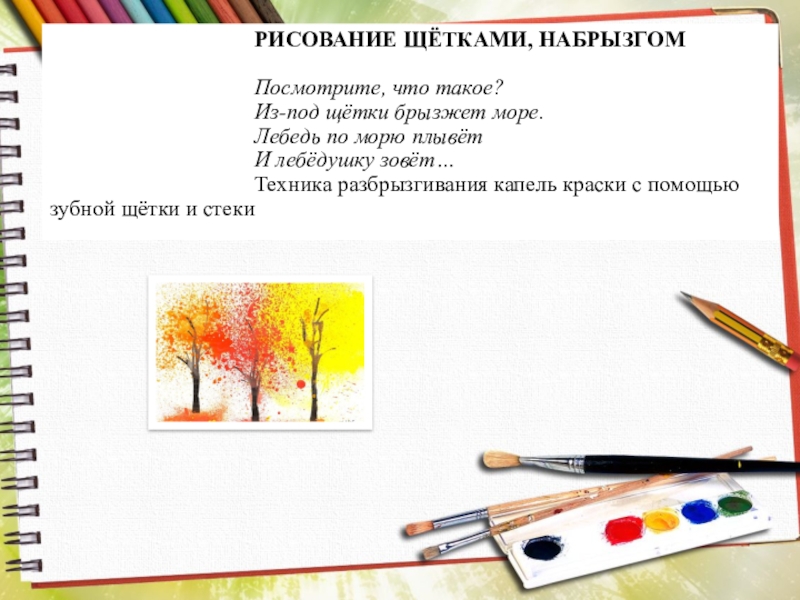 Слайд 10РИСОВАНИЕ ЩЁТКАМИ, НАБРЫЗГОМ