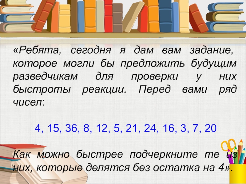 Как можно быстрее подчеркните те из них, которые делятся без остатка на 4».