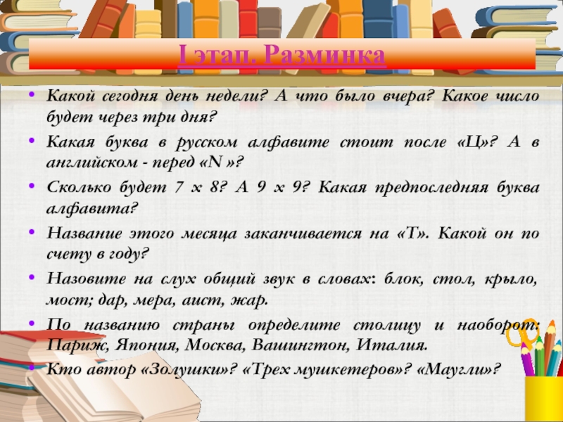 Слайд 12I этап. Разминка