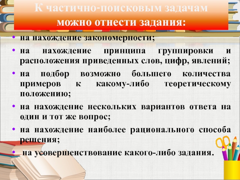 Слайд 16К частично-поисковым задачам можно отнести задания: