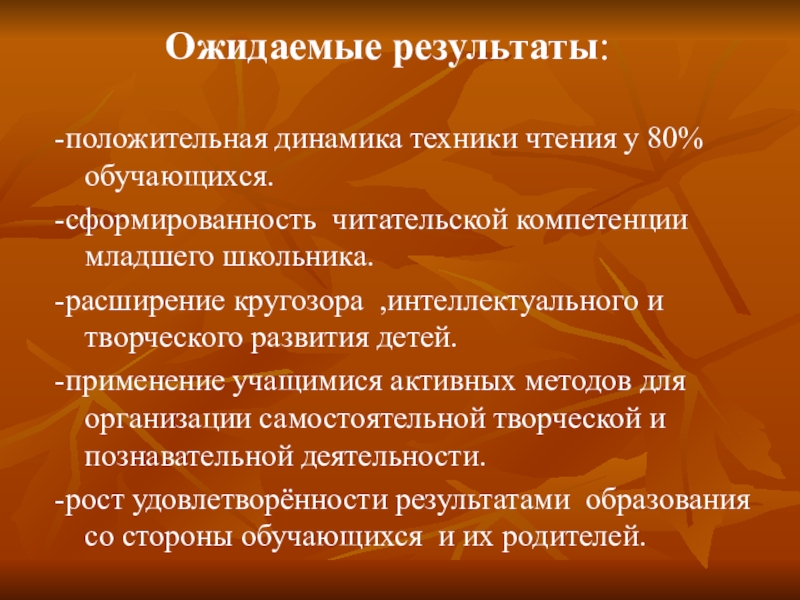 Слайд 6 Ожидаемые результаты: