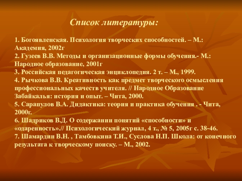 1. Богоявленская. Психология творческих способностей. – М.: Академия, 2002г